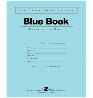 Generations of students spent stressful hours transferring their knowledge (as legibly as possible) onto lined paper stapled into blue covers. No notes, no internet, no spell check. Just you and the dreaded 8.5”x7” blue book.